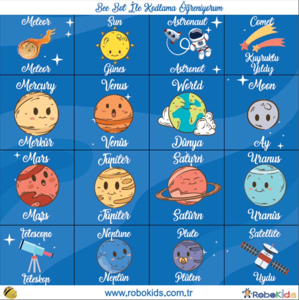 - Çift Dilli Eğitim: Türkçe ve İngilizce gezegen isimleriyle dil becerilerini geliştirme fırsatı.